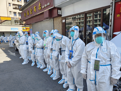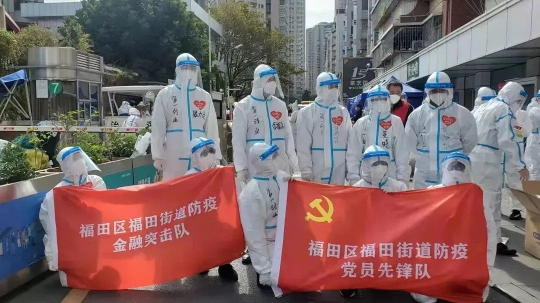 福田·卓越時(shí)代廣場(chǎng)項(xiàng)目迅速組織12人次支援社區(qū),分別到福安社區(qū)及崗廈社區(qū)參與掃樓及封村行動(dòng),持續(xù)工作12小時(shí)以上,高效有序配合社區(qū)工作站人員防疫工作。