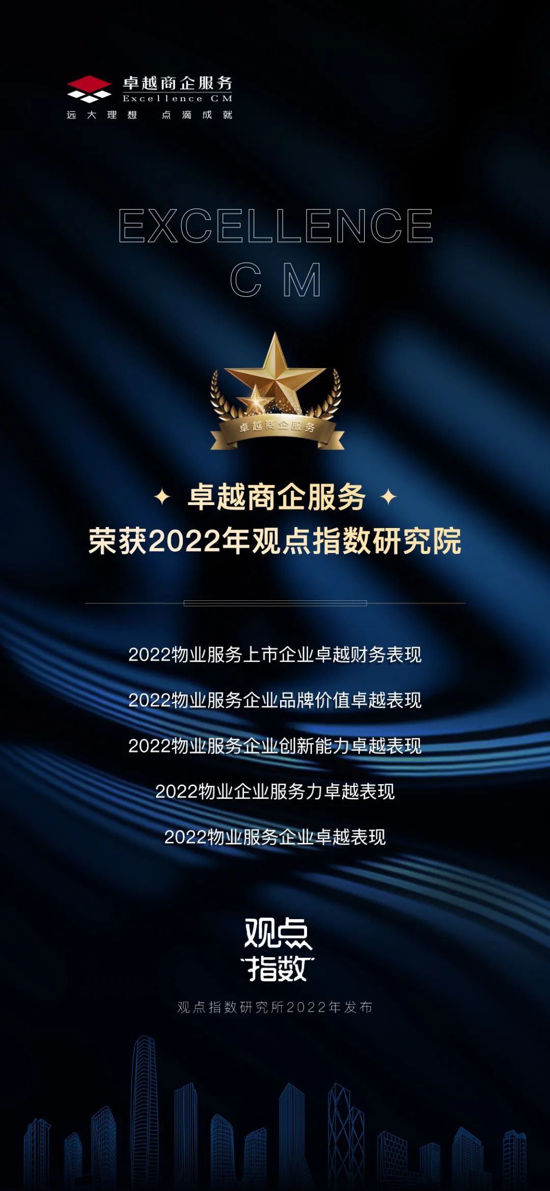 2022年4月12日,觀點物業(yè)大會于在廣州圓滿舉辦。會上,多家頭部物企分別從物業(yè)新維度、資本與并購、數(shù)字化機遇、價值重塑等角度發(fā)表了自己的觀點。在2022觀點年度論壇上,卓越商企服務(wù)憑借行業(yè)領(lǐng)先的優(yōu)勢榮獲 “2022物業(yè)服務(wù)上市企業(yè)卓越財務(wù)表現(xiàn)”、“2022物業(yè)服務(wù)企業(yè)品牌價值卓越表現(xiàn)”、“2022物業(yè)服務(wù)企業(yè)創(chuàng)新能力卓越表現(xiàn)”、“2022物業(yè)企業(yè)服務(wù)力卓越表現(xiàn)”、“2022物業(yè)服務(wù)企業(yè)卓越表現(xiàn)”等多項殊榮!