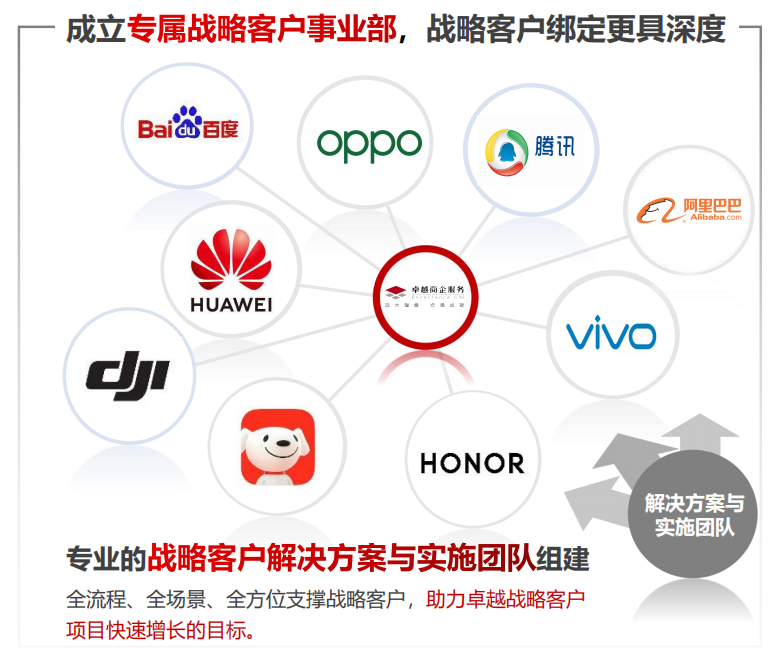 成立專屬戰(zhàn)略客戶事業(yè)部,配置專屬的戰(zhàn)略客戶中臺團隊,對戰(zhàn)略客戶進行重點支撐及拉通管理