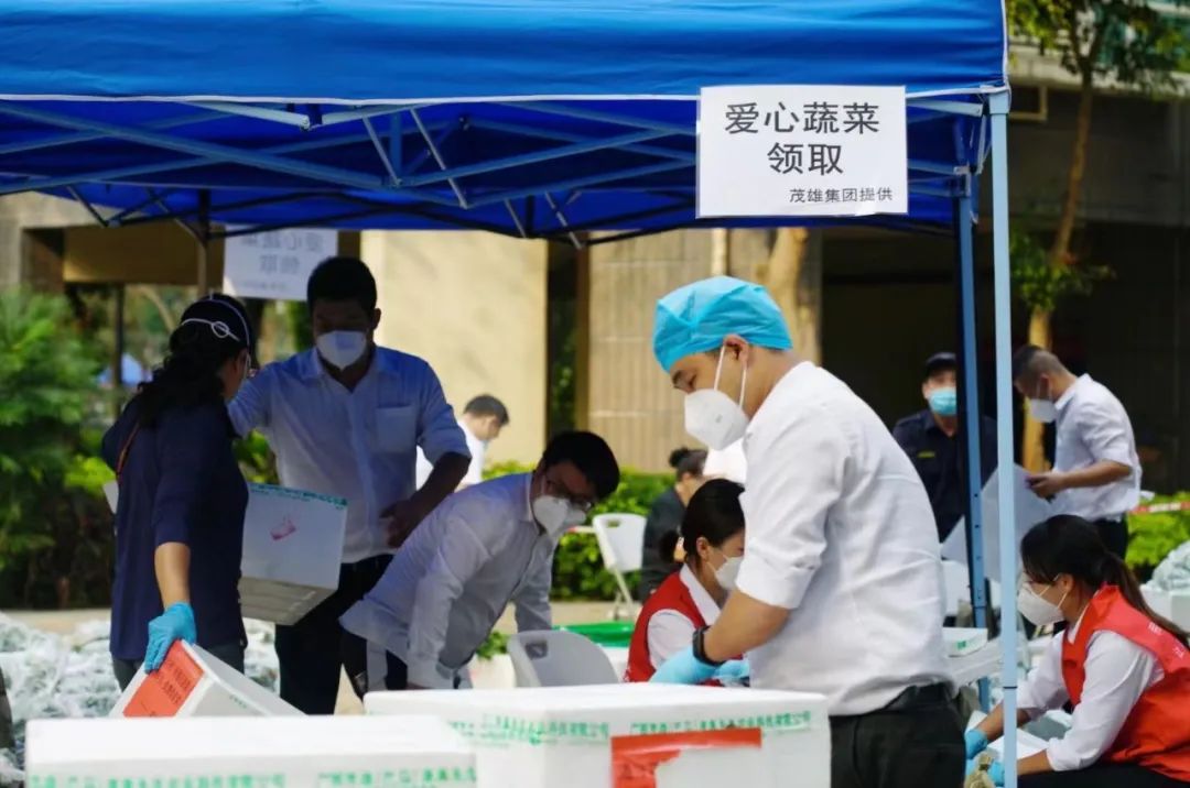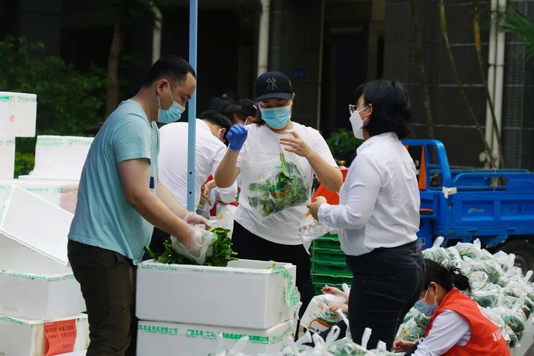 3月19日深圳卓越蔚藍(lán)海岸物業(yè)服務(wù)中心聯(lián)合茂雄集團(tuán)商鋪為小區(qū)住戶免費(fèi)提供3000余斤新鮮蔬菜,小區(qū)業(yè)主每人現(xiàn)場做完核酸即時派發(fā)蔬菜。
