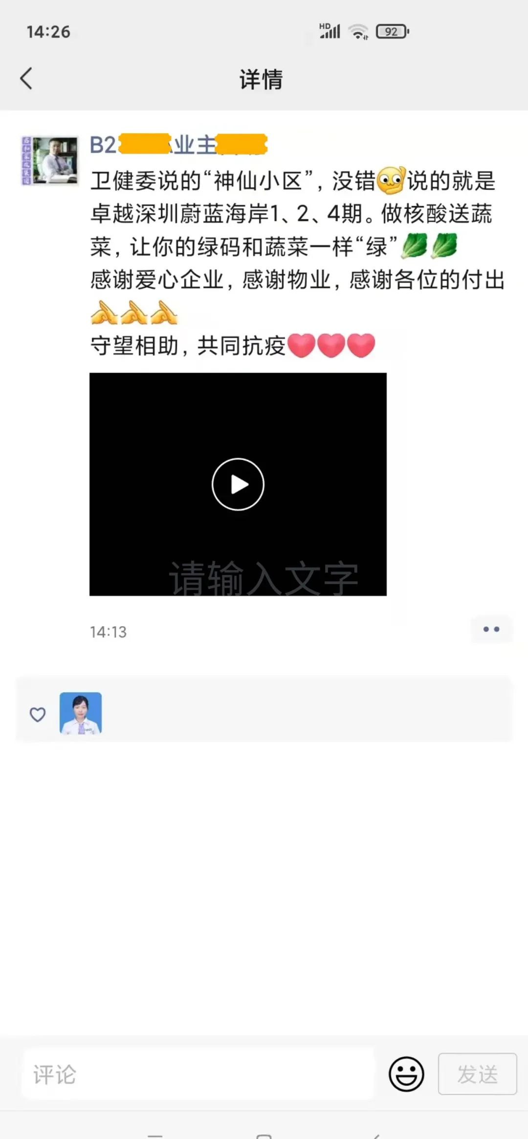 為保障業(yè)主做完核酸能及時領(lǐng)取愛心蔬菜,小區(qū)項(xiàng)目經(jīng)理帶頭,小區(qū)物業(yè)工作人員凌晨5點(diǎn)鐘起床開始井然有序地進(jìn)行分裝,3小時搭建愛心蔬菜派發(fā)驛站,卓越商企服務(wù)的暖心行動受到小區(qū)業(yè)主的花式狂贊,深圳蔚藍(lán)海岸更是被深圳衛(wèi)健委稱贊為“神仙小區(qū)”。