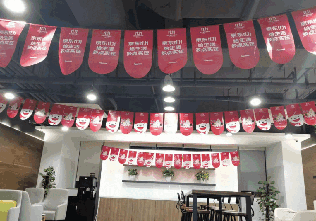 上海寶山京東職場(chǎng)項(xiàng)目團(tuán)隊(duì)協(xié)助客戶懸掛吊旗橫幅以及對(duì)聯(lián)粘貼等,助力客戶雙十一大促再創(chuàng)佳績(jī)。