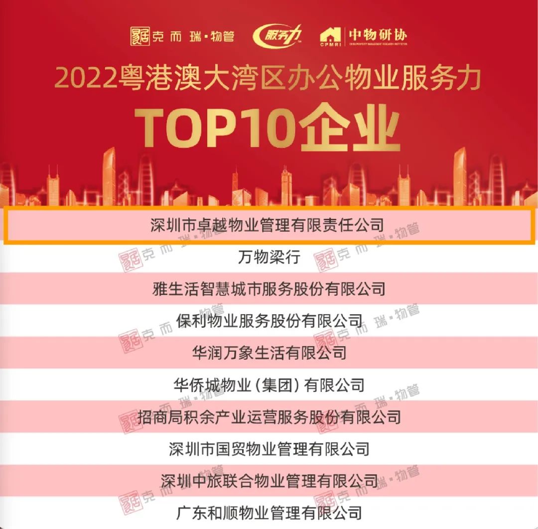 近年來(lái),卓越商企服務(wù)也一直被業(yè)界譽(yù)為企業(yè)總部物管標(biāo)桿,以國(guó)際品質(zhì)的標(biāo)桿服務(wù)致敬地標(biāo)項(xiàng)目,在贏得眾多知名企業(yè)客戶認(rèn)可的同時(shí),也樹立了高端商務(wù)服務(wù)第一品牌的行業(yè)名片。此次卓越商企服務(wù)在管項(xiàng)目「深圳卓越世紀(jì)中心」、「中國(guó)儲(chǔ)能大廈」獲得「2022粵港澳大灣區(qū)服務(wù)力寫字樓標(biāo)桿項(xiàng)目」,正是憑借著卓越商企服務(wù)多年來(lái)優(yōu)質(zhì)的高端商務(wù)服務(wù)能力和持續(xù)為客戶創(chuàng)造價(jià)值的服務(wù)品質(zhì)。