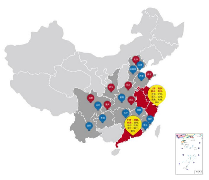 從區(qū)域來(lái)看,公司在管項(xiàng)目中,位于中國(guó)經(jīng)濟(jì)最發(fā)達(dá)的一線城市及新一線城市在管面積為3705.92萬(wàn)平方米,占比達(dá)74%;位于大灣區(qū)及長(zhǎng)三角區(qū)域在管面積分別為2202萬(wàn)平方米和995.1萬(wàn)平方米,占比分別為44%和19.9%。公司始終以專業(yè)的服務(wù)和創(chuàng)新機(jī)制為基礎(chǔ),建立人、企業(yè)與不動(dòng)產(chǎn)三者共同成長(zhǎng)的生態(tài)圈,打造中國(guó)領(lǐng)先的商務(wù)不動(dòng)產(chǎn)服務(wù)運(yùn)營(yíng)商。