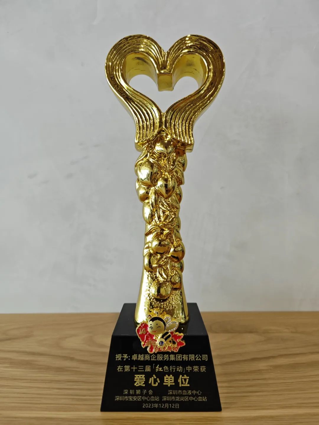 第十四屆紅色行動啟動儀式在深圳獅子會、深圳市血液中心、卓越集團(tuán)、卓越商企服務(wù)集團(tuán)有限公司深圳市卓越集團(tuán)公益基金會各方的通力合作下順利舉辦,儀式上回顧了2023年紅色行動取得的美好成就,卓越集團(tuán)、卓越商企服務(wù)、卓越集團(tuán)公益基金會均憑借在紅色行動中做出的卓越貢獻(xiàn),分別獲得「第十四屆紅色行動“卓越貢獻(xiàn)獎”」和「十三屆紅色行動“愛心企業(yè)獎”」