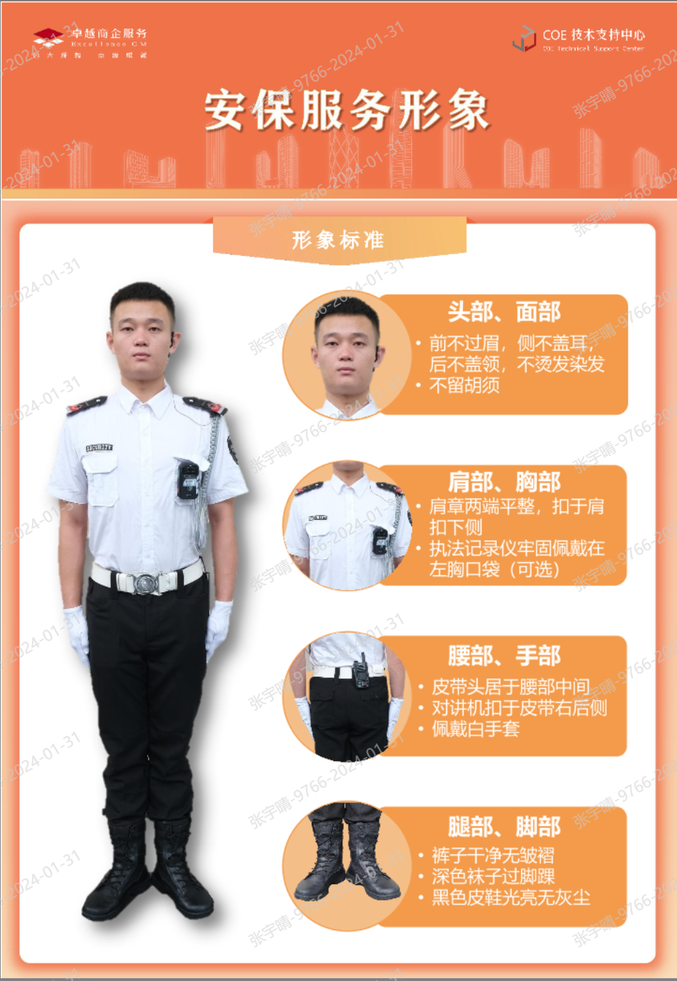 2023年,卓越商企根據(jù)二十多年對于不動產(chǎn)的服務(wù)運營經(jīng)驗對標(biāo)準(zhǔn)進(jìn)行了系統(tǒng)化的梳理和更新,并重新制定了可視化的標(biāo)準(zhǔn)圖冊,包括安保、環(huán)境和工程等服務(wù)內(nèi)容。