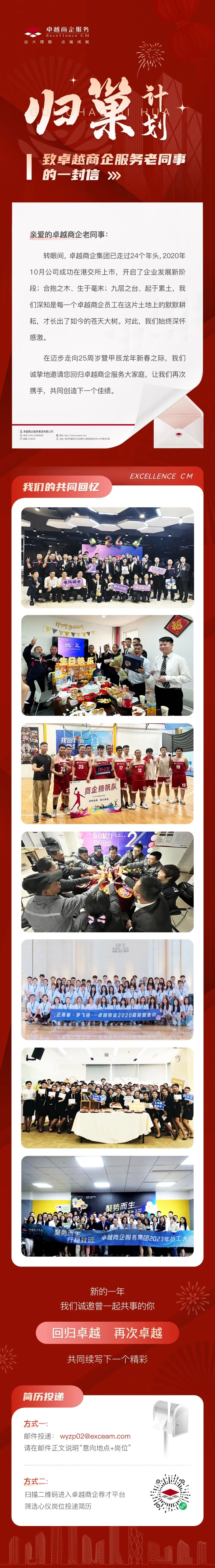 向卓越 再出發(fā) | “歸巢計劃”之致卓越商企服務(wù)老同事的一封信