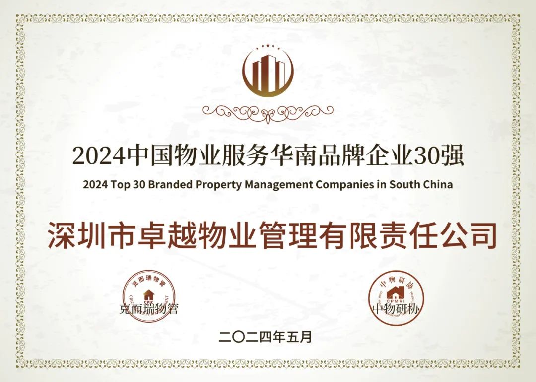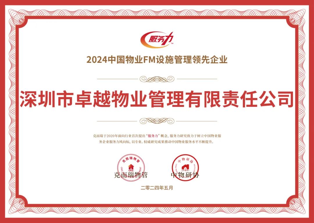2024年5月17日,由克而瑞物管&中物研協(xié)主辦、安徽省社區(qū)服務(wù)業(yè)協(xié)會(huì)協(xié)辦的「2024中國(guó)物業(yè)服務(wù)力百?gòu)?qiáng)峰會(huì)暨品牌價(jià)值峰會(huì)」在合肥隆重舉辦。卓越商企服務(wù)集團(tuán)作為中國(guó)領(lǐng)先的商務(wù)物業(yè)管理服務(wù)提供商,憑借在高端商務(wù)物業(yè)的領(lǐng)先優(yōu)勢(shì)和IFM業(yè)務(wù)領(lǐng)域的先行優(yōu)勢(shì),被克而瑞物管&中物研協(xié)評(píng)為「2024中國(guó)辦公物業(yè)服務(wù)力TOP20企業(yè)(TOP2)」、「2024中國(guó)物業(yè)FM設(shè)施管理領(lǐng)先企業(yè)(TOP3)」、「2024中國(guó)高端物業(yè)服務(wù)力TOP20企業(yè)(TOP5)」等物業(yè)細(xì)分賽道領(lǐng)先獎(jiǎng)項(xiàng)。