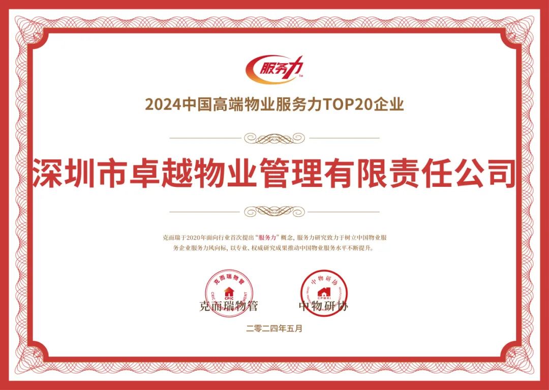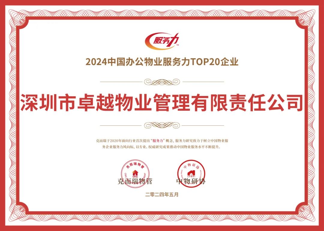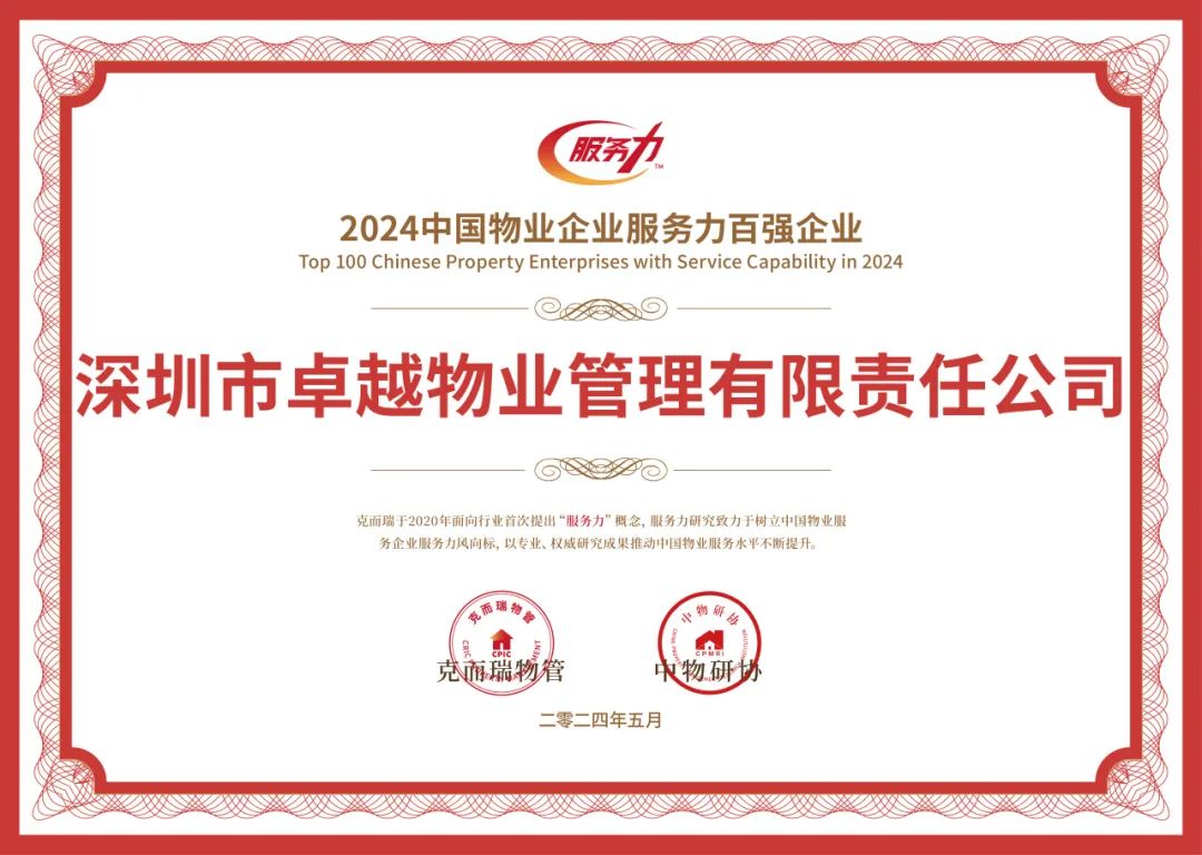 自2020年克而瑞首次發(fā)起中國(guó)物業(yè)服務(wù)企業(yè)服務(wù)力研究以來(lái),卓越商企服務(wù)憑借領(lǐng)先的綜合實(shí)力和服務(wù)水平連續(xù)4年榮膺「中國(guó)物業(yè)服務(wù)力百?gòu)?qiáng)企業(yè)」、「2024中國(guó)物業(yè)服務(wù)企業(yè)品牌價(jià)值100強(qiáng)」等多項(xiàng)榮譽(yù)!