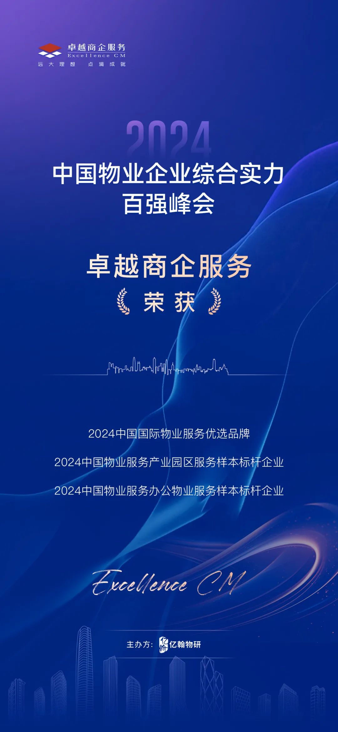 卓越榮譽|卓越商企服務(wù)榮獲「2024 中國物業(yè)服務(wù)辦公物業(yè)樣本標(biāo)桿企業(yè)」等榮譽