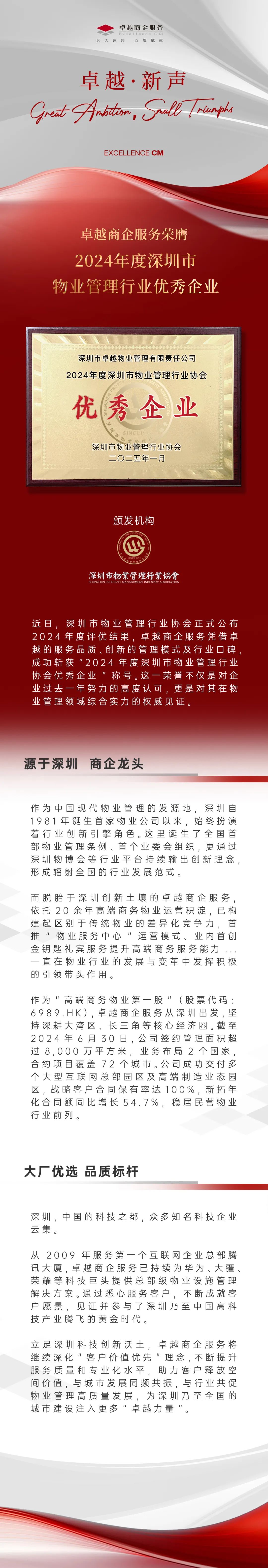 始于鵬城生長(zhǎng)全國(guó),卓越商企服務(wù)榮膺深圳市物業(yè)管理行業(yè)優(yōu)秀企業(yè)殊榮