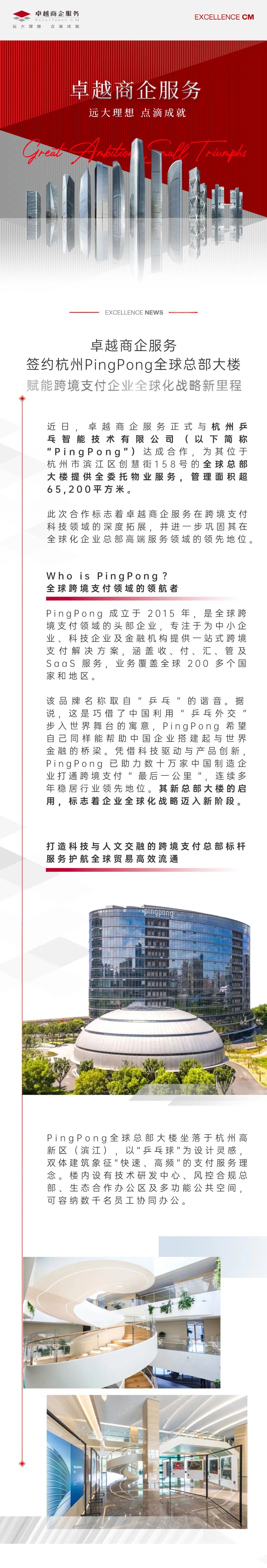 卓越·共贏丨卓越商企服務(wù)簽約杭州PingPong全球總部大樓