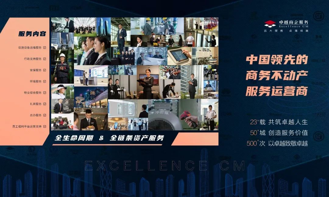 卓越商企服務(wù)作為中國領(lǐng)先的商務(wù)不動產(chǎn)服務(wù)運(yùn)營商,深耕地產(chǎn)物業(yè)服務(wù)20余年,在商務(wù)物業(yè)及企業(yè)工作場所、公共建筑、產(chǎn)業(yè)園區(qū)等業(yè)態(tài)均有所布局,致力于為客戶提供全生命周期商務(wù)資產(chǎn)維護(hù)和全鏈條的服務(wù)解決方案。