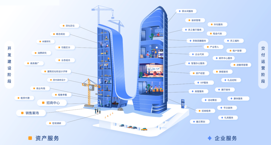 卓越商企服務(wù)的可持續(xù)發(fā)展包括兩大模塊樓宇全生命周期解決方案和企業(yè)服務(wù)解決方案。樓宇全生命周期解決方案包括低碳、WELL與智慧樓宇及資產(chǎn)運(yùn)營服務(wù)等;企業(yè)服務(wù)解決方案則專注于未來辦公場(chǎng)所策略及企業(yè)綜合服務(wù),以多元化服務(wù)成就客戶商業(yè)愿景。