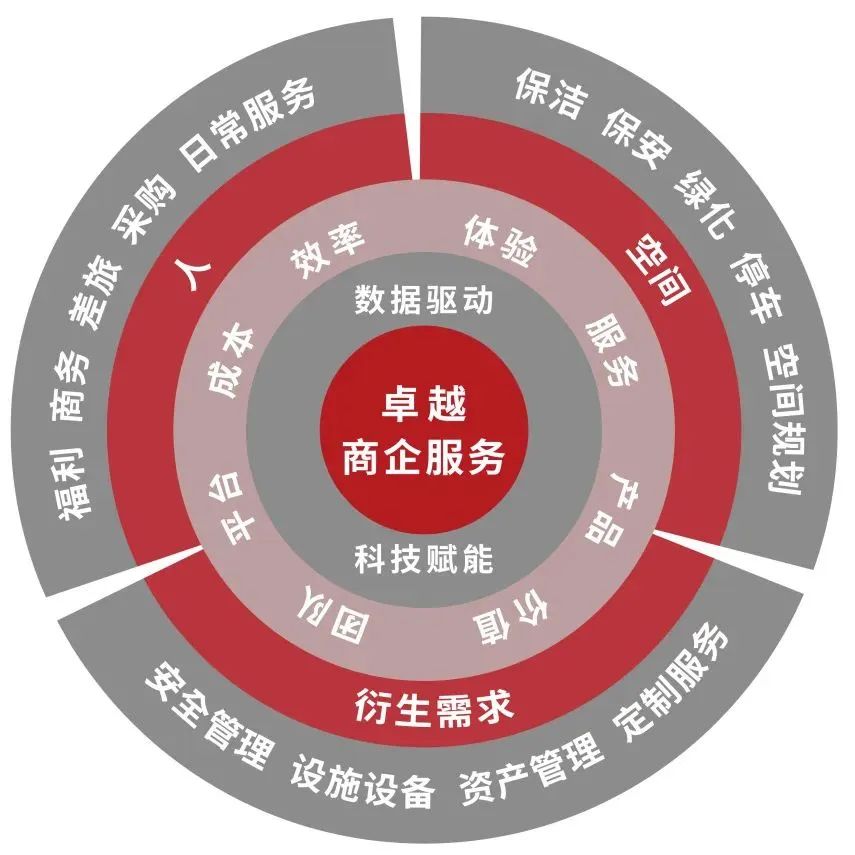 不僅可為企業(yè)提供物業(yè)服務(wù)、設(shè)施設(shè)備服務(wù)、安全服務(wù)、環(huán)境服務(wù)等基礎(chǔ)服務(wù),還有資產(chǎn)服務(wù)、行政福利、高端商務(wù)等多項增值服務(wù)。