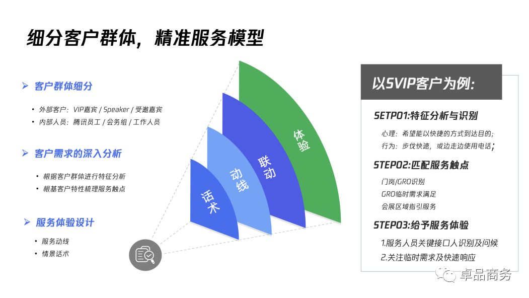 體驗管理的另一重要對象是SVIP嘉賓,卓品商務針對性地按1:1為VIP室配置固定的禮賓員服務,更是在SVIP區(qū)域配置了特勤人員保障參會安全。素未謀面的禮賓員,與會期間一定是SVIP最熟悉的陌生人,會前就要求對近80名SVIP做好樣貌、身份信息等提前熟悉,以便在語言、飲食口味、與會時間等方面做好準備。甚至卓品會提前準備好SVIP區(qū)域的披肩、茶具等,提出主辦方要求以外的高標準。